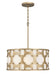 Carter is a traditional drum silhouette with details galore. An intricate, hand-riveted pattern in Burnished Gold or Weathered Bronze encompasses the off-white textured fabric shade. A decorative candle cluster bursts within to further enhance this dynamic design.
