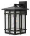 Tucker is a study in symmetry with clean geometric lines and proportions reinforced throughout its cast aluminum construction. The sturdy Oil Rubbed Bronze finish and clear seedy glass inspire a rustic lodge aesthetic.