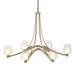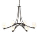 The flowing, hand-forged steel ribbons of our six-armed Ribbon Chandelier crescendo midway between each pairing of glass dome over glass tube. Delicate steel pipes hold the piece to complete the composition.