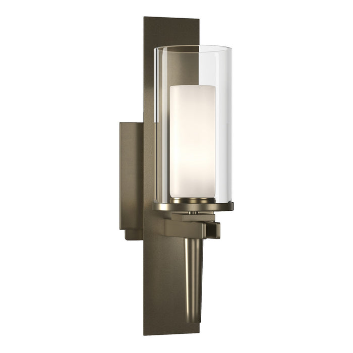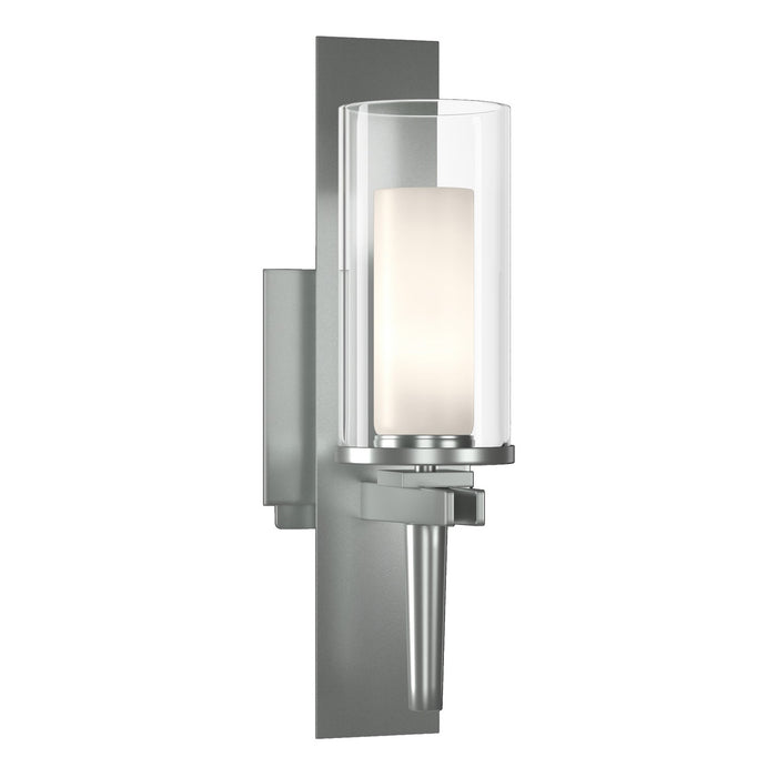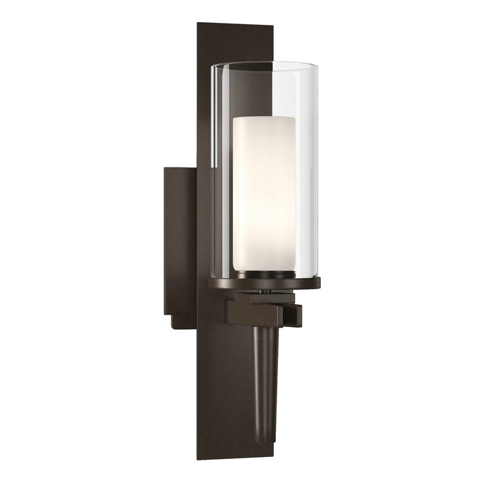 From man caves to movie theatres and beyond, our update to the medieval torch sconce seriously dresses up a space. Our metalsmiths ply their craft to create a tapered arm of steel couched in a horizontal bar that's welded to a hand-worked steel mounting plate.