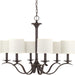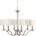 Brushed Nickel six-light chandelier provides a welcoming silhouette in any home. Unique off-white linen shades encompass an inner glass globe. The rich, layering effect creates a dreamy look that is both elegant and modern. Offered as a complete collection, the Invite styling can be carried throughout your home or as a focal style in a special room.