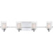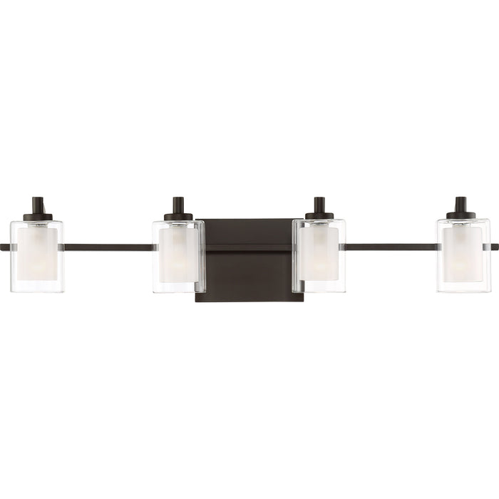 This modern posh collection features a simplistic design with a brushed nickel finish. The inner heavy glass is sand-blasted inside and encased within outer clear glass for a sophisticated and stunning look.