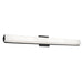 An extruded rectangular diffuser surrounds the LED source of the geometric vanity fixture. Capped by two thick offset squares the design is characterized by minimal details and clever features. During installation the lamp assembly may slide on the mounting track to allow for ideal positioning. Adding to the versatile function are the multiple fixture lengths and mounting orientations. Optional installation without backplate for smaller junction boxes.