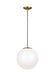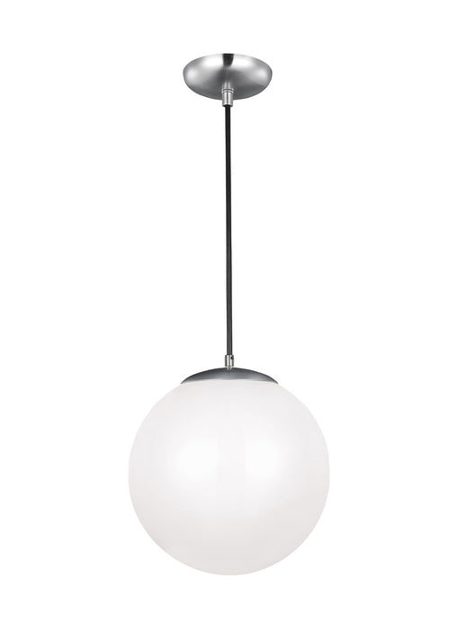 The Leo - Hanging Globe one light indoor pendant in satin aluminum is the perfect way to achieve your desired fashion or functional needs in your home. While hanging globes are one of lighting's hottest trends, Sea Gull's timeless Leo Collection has been around for 50 years! Constantly evolving with the times, these classic pendants are now offered with NEW Clear Seeded glass and in Satin Aluminum finish. Adjustable cloth cords allow for unlimited variations of hanging heights. All glass softly diffuse the light, each fixture comes with 54” of cuttable cord to customize the installation exactly to your needs. Easily convert every piece in the collection to LED by purchasing LED replacement lamps sold separately. All fixtures are qualified and California Title 24 compliant and damp rated for use in sheltered, damp environments like bathrooms, covered patios or porches.
