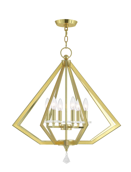 The Diamond six light antique brass chandelier lets you explore a new facet of your design sense.