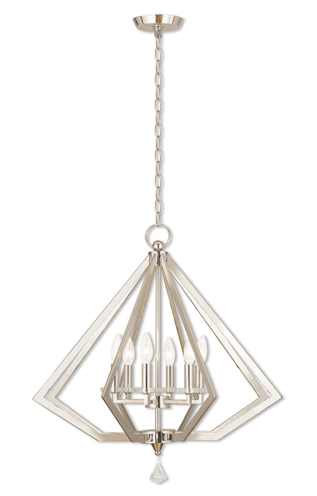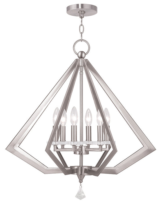 Shaped like a diamond, this contemporary six light chandelier is like jewelry for your home's interior.