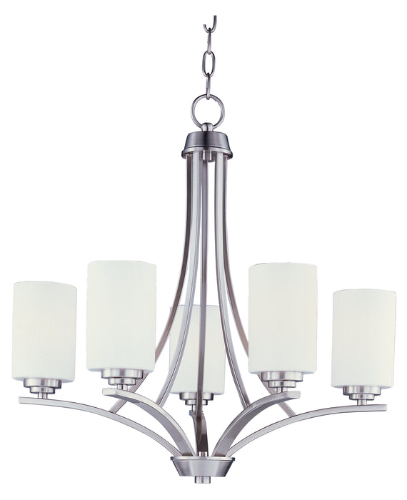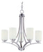 Low sloping arms of rectilinear tubing is finished in a variety of options that include Satin Nickel, Oil Rubbed Bronze, Matte Black, and a contemporary Satin Brass finish. Tall, cylindrical Satin White glass shades soften the light source within. Offered in a variety of configurations that include chandeliers, sconces, and a semi-flush pendant that may be used as a foyer pendant, has become a proven popular choice among builders.