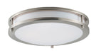 Commercial grade energy efficient lighting featuring linear frames of metal finished in Satin Nickel diffused by an etched opal acrylic creating an updated energy efficient classic.