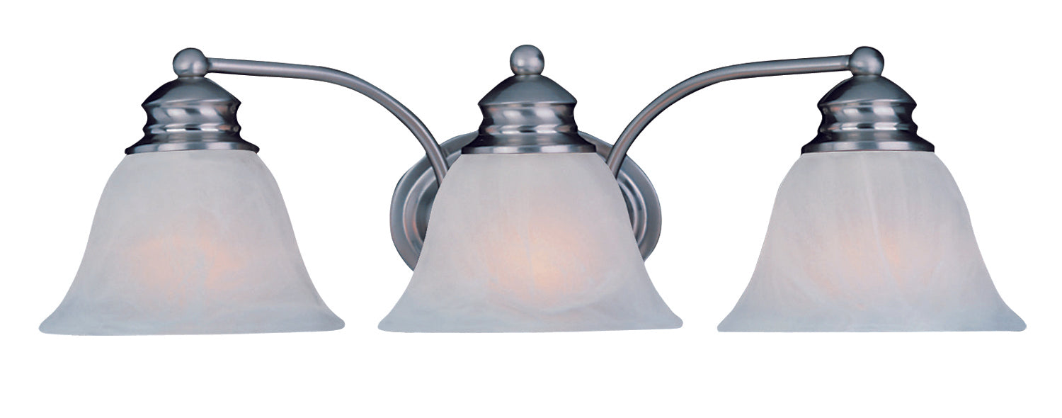 Malaga 3-Light Bath Vanity in Satin Nickel with Frosted Glass