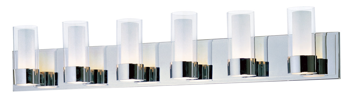 The Silo collection makes artful use of thin-profile rectangular tubing with a mirror-like Polished Chrome finish for a clean, contemporary look. A subtle Frost on the underside of the two cylindrical glass shades adds softness to the sleek lines, while the bright Xenon lamps are cleverly concealed in the cast metal ring allowing ample light to cast both upwards and downwards without glare.