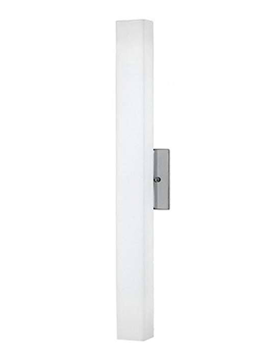 LED wall sconce with rectangular shaped white opal glass. Metal details in brushed nickel or chrome finish and is equipped with our powerful 12V AC LED technology. Available in for two different styles and sizes, view series for more details.