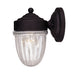 Brighten up your great outdoors with the versatile style of this 1-light outdoor wall sconce. Its lantern inspired structure includes a clear beveled glass shade and is finished in textured black. 14.25" height, 6.25" width, extends 7.50" from the wall. Max 60 watt bulb, standard size A19 bulb recommended. LED bulb compatible. Wet area rated.
