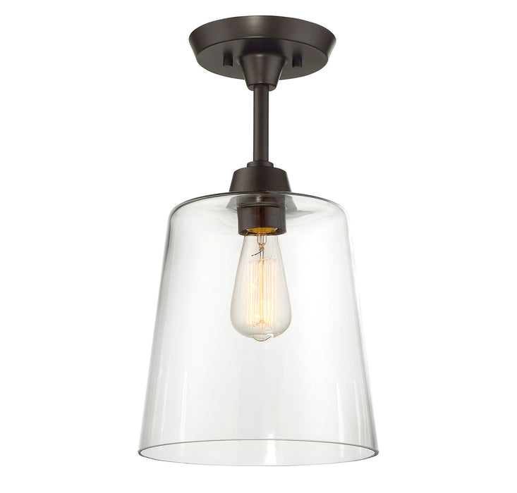 Change up your ceiling lighting with this understated, stylish 1-light semi-flush mount. Clear glass shade and Brushed Nickel finish.
