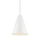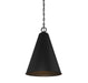 This Meridian 1-light pendant flaunts an opaque cone-shape shade and a chain with interlocking circles, making for a fetching geometric look. It is finished in matte black and is great for bringing focused, directed light to areas like kitchen islands. This pendant is 27.75 inches in height and 18 inches in width, plus it includes 120 inches of chain to let you adjust the hanging height as needed. The ceiling canopy is 5.13 inches in diameter and 0.88 inch in height. This pendant uses 1 medium size bulb of up to 60 watts, is LED compatible and is dimmable.