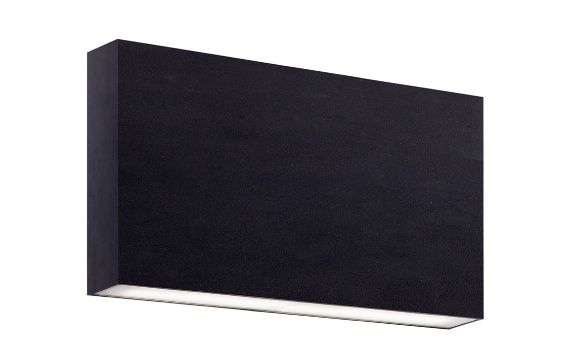 This All-terior minimalist sleek cast aluminum wall sconce is a beautiful addition to any indoor or outdoor room. Rectangular in size with smooth sleek sharp corners. Installed at the top and bottom of the fixture is our powerful 12V AC LED technology, 14W, fully dimmable covered by premium frosted optical lenses which omits the light from the fixture evenly against the wall. Available in two different styles and sizes view series for full family details.