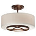 City Club 3-Light Semi-Flush Mount in Dark Brushed Bronze (Painted) with Glass & Fabric Shade