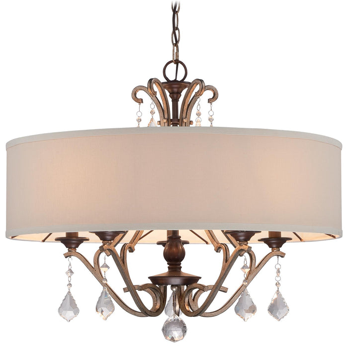 Gwendolyn Place 5-Light Pendant in Dark Rubbed Sienna with Aged Silver with Oatmeal Linen Fabric Shade