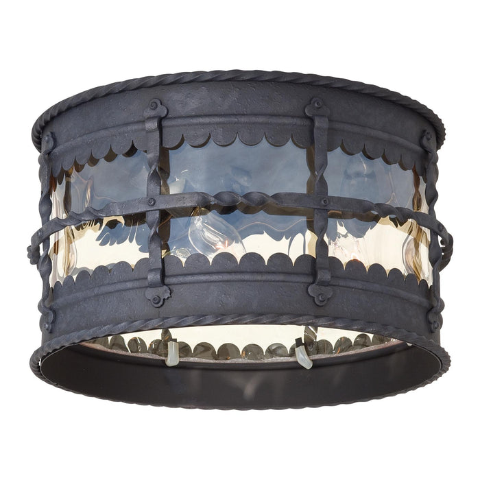 Mallorca 3-Light Flush Mount in Spanish Iron & Champagne Hammered Glass