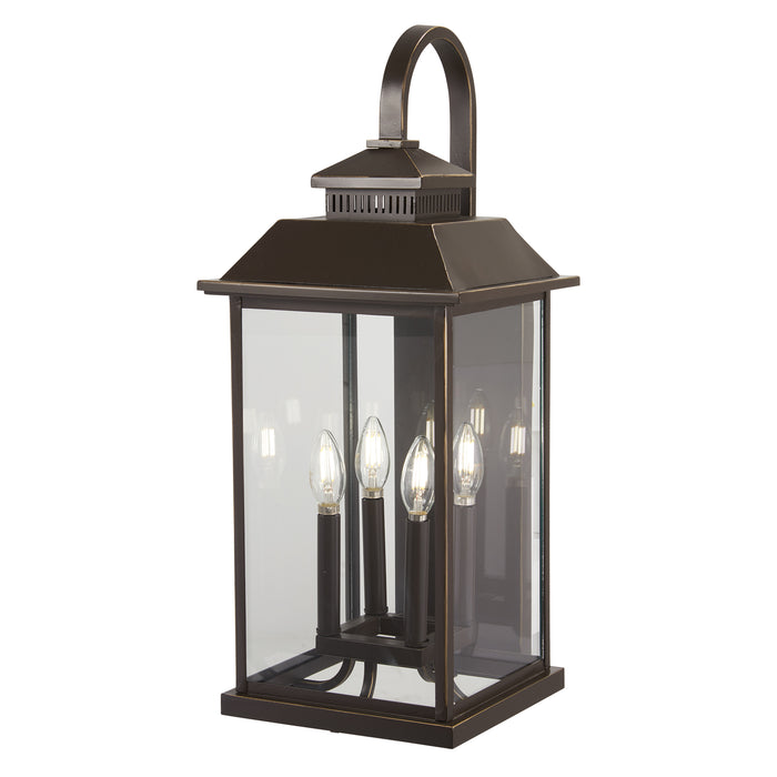 Miner's Loft 4-Light Outdoor Wall Mount in Oil Rubbed Bronze with Gold High & Clear Glass