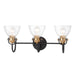 Monico 3-Light Bath Vanity in Painted Bronze with Natural Brushed Brass & Clear Seedy Glass