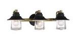 Westfeild Manor 3-Light Bath Vanity in Sand Coal with Soft Brass & Clear Seedy Glass