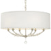 If you love high style fashion, why not also dress your home in it. The eye catching design of the Mirage collection features a polished nickel base with arms dressed in faceted beaded crystal. The chandelier supports crisp white shades for a modern appeal. Sleek and streamlined with the addition of subtle beaded jewelry, this fixture works with any decor.