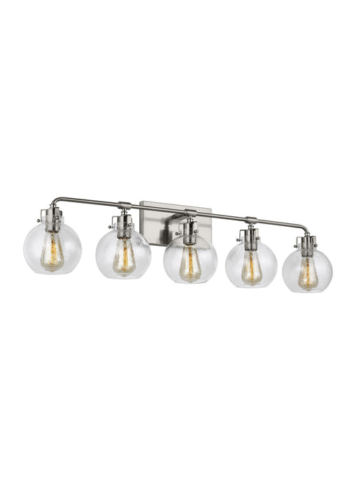 Clara features Clear Seeded glass shades that subtly diffuse the lamping while allowing the exposed bulb to be a central design element of the fixture. Choose the look that is right for your space with four finish options: Burnished Brass, Chrome, Satin Nickel, Oil Rubbed Bronze or a two-toned finish of Textured Black with Chrome.