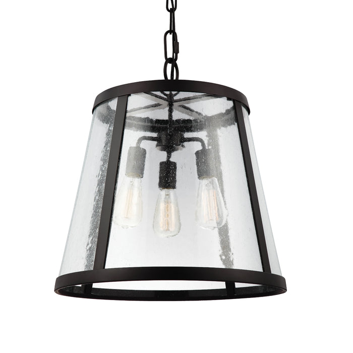Combining the traditional profile of a tapered shade with on-trend Clear Seeded glass, the sleek frame and the square-linked chain give the Harrow pendant light collection an elevated, contemporary, transitional look. The wall sconce is delivered with two glass options, Clear Seeded and Opal Etched, for the customer's choice to customize. Burnished Brass, Oil Rubbed Bronze, and Polished Nickel finishes are available to create completely different looks.
