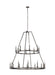 The transitional Landen features chandeliers with either our industrial Smith Steel finish details. This modern farmhouse collection is versatile enough to fit within a wide range of decor from farmhouse to urban loft. A grand 53" high two-tier chandelier makes a dramatic statement. All fixtures in the Landen collection are damp-rated, however, the chandeliers with the Antique Forged Iron/Painted Aged Brass finish include optional glass candle covers to protect the lamping from moisture.