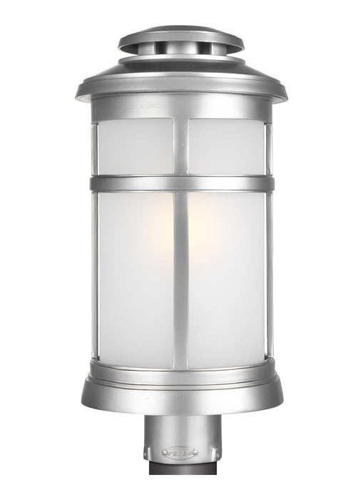 The Newport one light outdoor post top in painted brushed steel creates a warm and inviting welcome presentation for your home's exterior. The nautical-inspired Newport outdoor lighting is complete with lighthouse details including a vented top and a detailed cast frame surrounding an inner Opal Etched glass inner shade. Newport is available in either Painted Silver or Antique Bronze outdoor finishes and is made of StoneStrong - a unique synthetic composition that is made tough enough to withstand harsh environmental conditions, making it a great choice for Coastal applications.