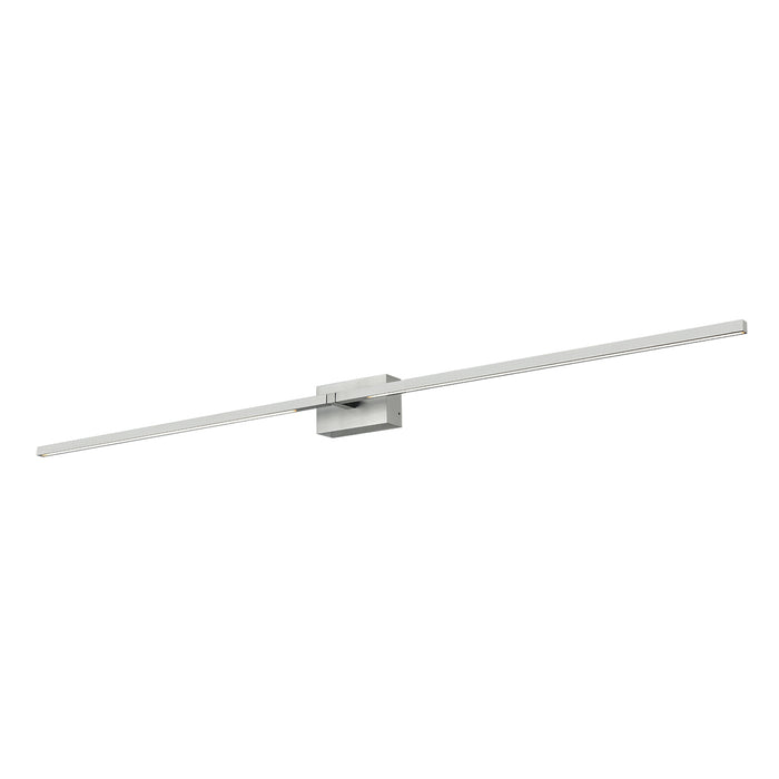 Square profile linear aluminum with rectangular wall mount. Inset opal polymeric diffuser. Finely textured plate or powder-coated finish. Wall emitting light with rotational adjustment.