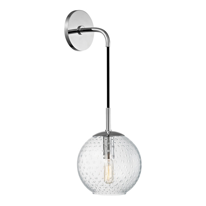 Thick mouth-blown glass with a discrete pattern of bubbles domes around a warm incandescent bulb. At its base, the globe has an opening, which allows you to manually change the bulb. Smooth woven cords add an urbane touch. Exciting options in our Rousseau family include several fun colors and the choice between hanging a single pendant or a staggered cluster.