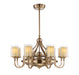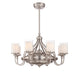 When you�d like both a stylish chandelier and the cooling comfort of a ceiling fan, choose this Etesian fan d�lier. It�s the perfect combination of practical function and beautiful design for your home. Six graceful, curved arms hold elegant streamlined candle cups, with nicely decorative details. The circular fan housing has a refined, two-tier design and delightful finial and canopy. And the entire structure has a gorgeous burnished russet finish. The six shades are beautiful, too: each has an outer cylinder of clear glass and an inner cylinder of cream-colored glass �allowing glare-free illumination from the included 6W, dimmable LED bulbs. A full function handheld remote is also included, so you have independent control of the light and fan.