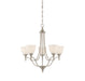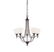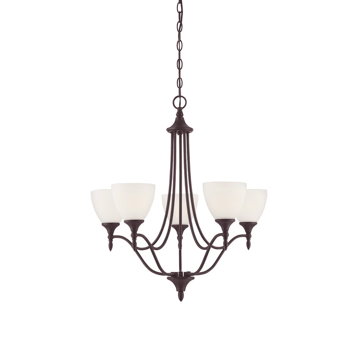 Great lighting is a key piece of excellent home design, and the Herndon chandelier is a solution to that puzzle! The rich, dark English bronze is a timeless finish. And streamlined, finely crafted details �like the ball and cone finials and the simple, curved cup shade holders� create a clean, classic design that looks terrific. The style is familiar and pleasant, which sets a serene and relaxed mood. A nicely detailed bottom finial and central column connect to five graceful, arched light arms with smooth, white glass shades. Five 60W, E-style bulbs provide soft, flattering light, ensuring you and your guests are comfortable. This chandelier is 26� wide and 27.5� high: a stylish fixture with casual elegance you�ll enjoy for years to come.