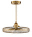 The Wetherby has a stylish, vintage look thanks to it�s classic cage frame. This fan d�lier features an inner ceiling fan with 14� blade span, and an integrated light, for both illumination and air comfort. The 29� wide fixture has a terrific, warm brass finish with gold fan blades. And a white etched glass shade covers the included 12W dimmable LED bulb (800 lumens, 3000K). A handheld remote is also included, with three-speed fan control and independent light control �for easy light and airflow adjustments. This fan d�lier is UL rated for damp locations so it may be installed indoors, in your dining room, kitchen, living room, office, or family room, as well as in covered outdoor areas, such as your porch, garage, workshop, or sunroom.