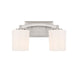 Get understated glamour for the bathroom with this Savoy House Whitney 2-light bath vanity light. Fluted shades of opal etched glass offer up a flattering glow, the curving arm adds intrigue and the warm brass finish adds versatility. Whitney is 8" in height, 14" in width and extends 6.50" from the wall. It uses two standard size bulbs of up to 60 watts per bulb (bulbs not included).
