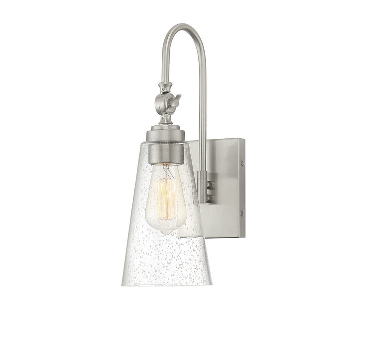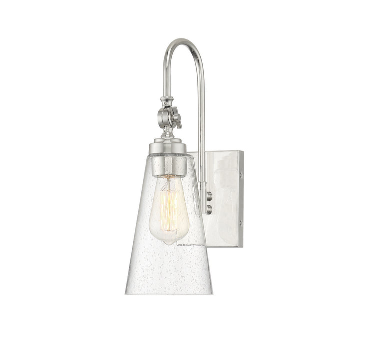 A sleek and sophisticated aesthetic defines the York single-light wall sconce. Measuring 5�" wide x 16" high x 8 �" extension, this one-light sconce in a Polished Chrome finish provides ample illumination from one 60-watt Edison-base bulb. The clear seeded glass shade maximizes the light output.