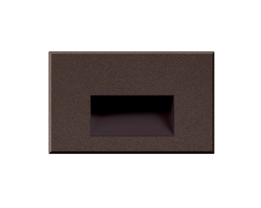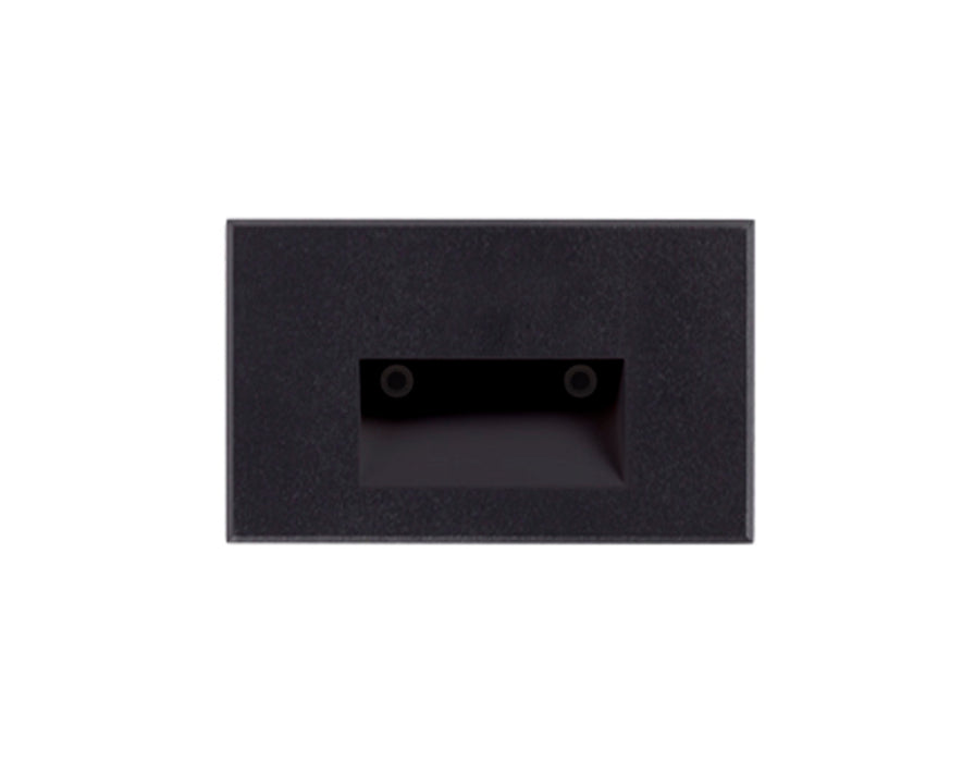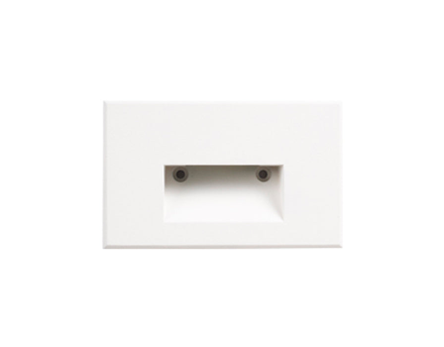 A horizontal rectangle-shaped recessed light in matte black, white powder, bronze or brushed nickel finish. The optically designed light control of Sonic's die cast Aluminum housing fully conceals the source. Ideal for step or courtesy light use. This fixture is rated for outdoor use but there is no reason it cannot be utilized indoors too. Only fits into a single gang box.