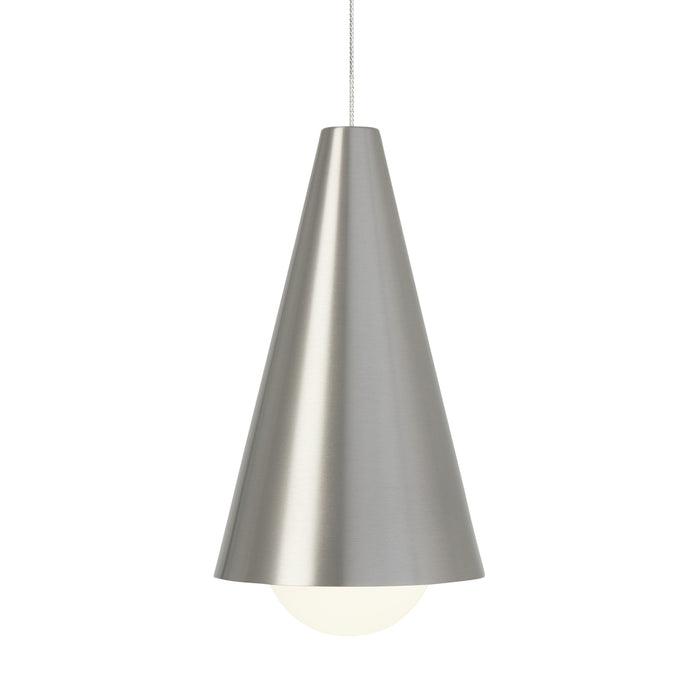The Mini Joni Low-Voltage Pendant by Sean Lavin features an integrated LED lamp suspended within a conical shade and creates a uniquely contemporary smaller-scale pendant. For heightened visual interest, Mini Joni is designed with two-tone finish options. Offered in stylish finishes. At 5.5" in diameter, the Mini Joni Pendant is a great fixture to install in multiples and adds a contemporary statement to your kitchen, living room, hallway and bedroom. Low-Voltage Pendants complement our VC Modern MonoRail Track System. Complete the look with the larger scale Joni Pendants, Wall Sconce and Flush Mount. Lamping options are compatible with most dimmers. Refer to the Dimming Chart for more information.