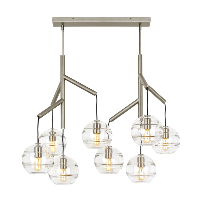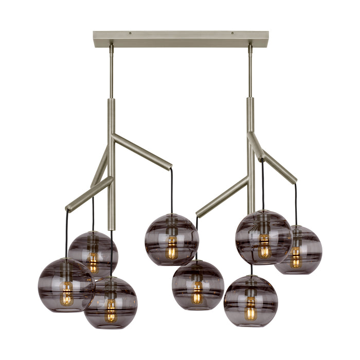 The Sedona Double chandelier from VC Modern perhaps is best described as a deconstructed modern chandelier, where four glass orbs are each suspended from the sleek branchlike central hub via contrasting textured cloth covered cords to make a distinctly alluring visual statement. While each transparent clear or transparent smoke glass orb is perfectly spherical and smooth on the exterior surface, the interior surface features gradually thickening bands of glass which are artfully crafted by talented artisans to add alluring visual interest and dimension to your space. Whether you select the single, double or triple chandelier, you are sure to find a option perfect for your kitchen island lighting, dining room lighting or living room lighting application. Its two fully dimmable vintage tubular style LED lamping options are not only energy efficient, but also allow you to customize these pendant lights to your desired ambiance.