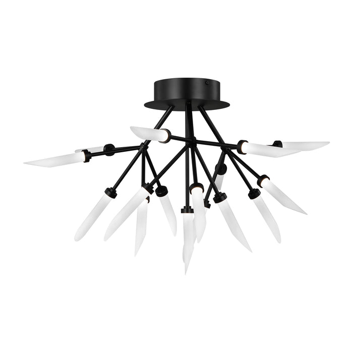 The Spur ceiling mount by Sean Lavin is a smaller rendition of the grand chandelier. Three arms extend from the ceiling with clusters of five frosted glass spurs illuminated by a compact, diffused LED light source. Available in modern finishes, the Spur Ceiling Mount is a design-forward solution to your dining room, living room, bedroom and hallway. Complete your modern look with the Mara wall sconce, pendant and chandelier for full room coordination. Lamping options are compatible with most dimmers. Refer to Dimming Chart for more information.