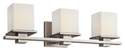 This 3 Light Wall Fixture From The Tully(Tm) Collection Creates A Pleasing Flow In Any Bathroom Or Vanity Space. Characterized By Clean Lines And A Simple Cubic Design, It Provides An Airy, Uncluttered Feel With An Understated, Contemporary Flair. Featuring An Antique Pewter Finish With Satin Etched Cased Opal Glass, This Composition Blends Effortlessly With Existing Decor While Still Leaving A Unique Impression. May Be Installed With Glass Up Or Down.