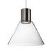 Refined single LED pendant with heavy gauge steel and clear trapezium shaped glass. Brushed nickel metal details. Provided with our powerful 12V AC LED technology