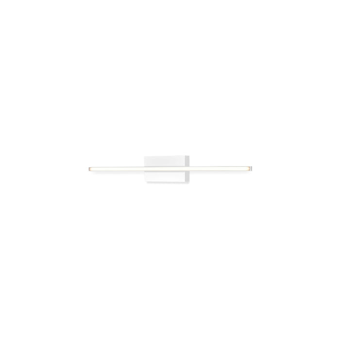 Square profile linear aluminum with rectangular wall mount Optional adapter plate for larger junction box Inset opal polymeric diffuser Finely textured plate or powder-coat finish Outward-emitting light