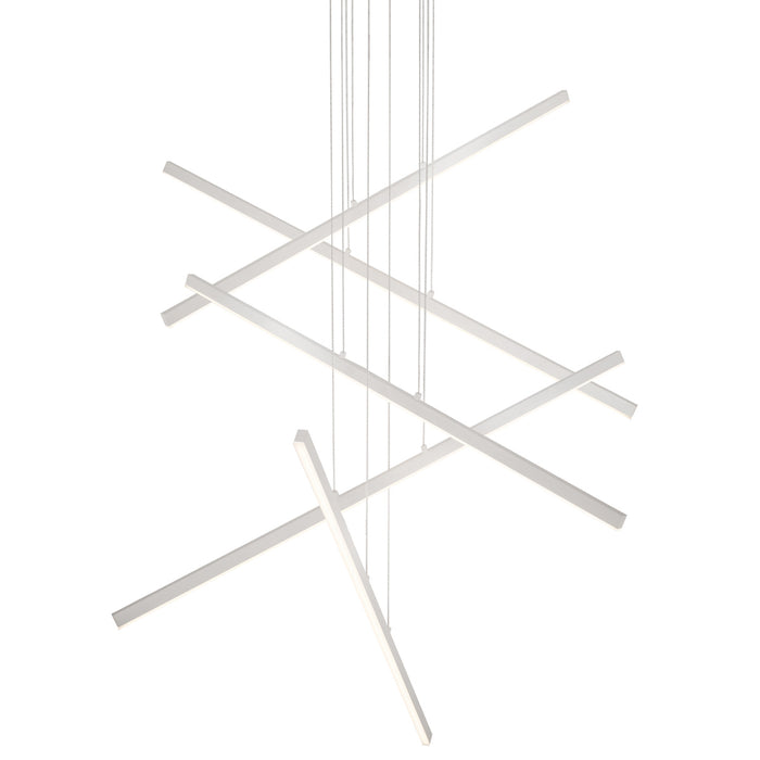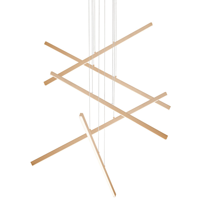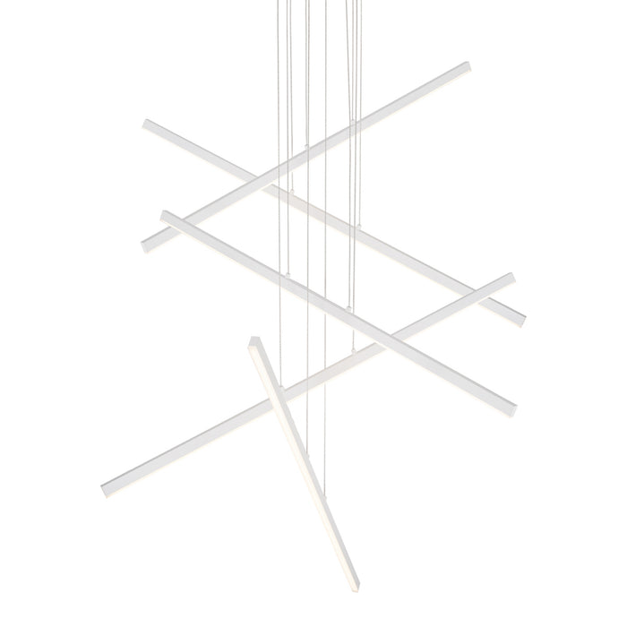 The linear lights can be configured at different heights and angles to create distinct sculptural orientations. Ordered into clean parallels or jumbled in playful asymmetry, Vega can be customized to complement any space.