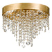 The Winham ceiling mount is a sparkling masterpiece when placed as a focal point to a room. It's wrought iron frame finished in Antique Gold features countless strands of multi-sized faceted cut crystal jewels reflecting prismatic light. Place in a bathroom, master closet, or bedroom for a touch of glam.