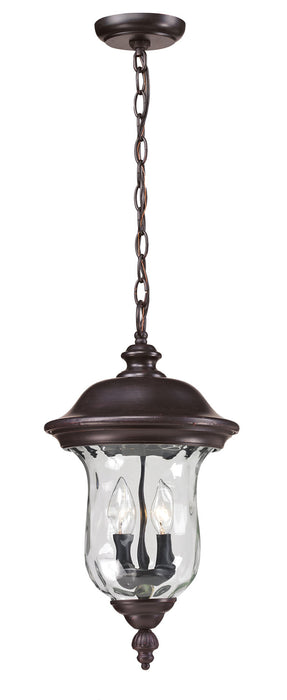Traditional charm emanates from this medium outdoor chain hung fixture, which pairs clear water glass with black hardware for a timeless look.
