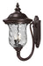 Traditional charm emanates from this large outdoor wall mount fixture, which pairs clear water glass with black hardware for a timeless look.