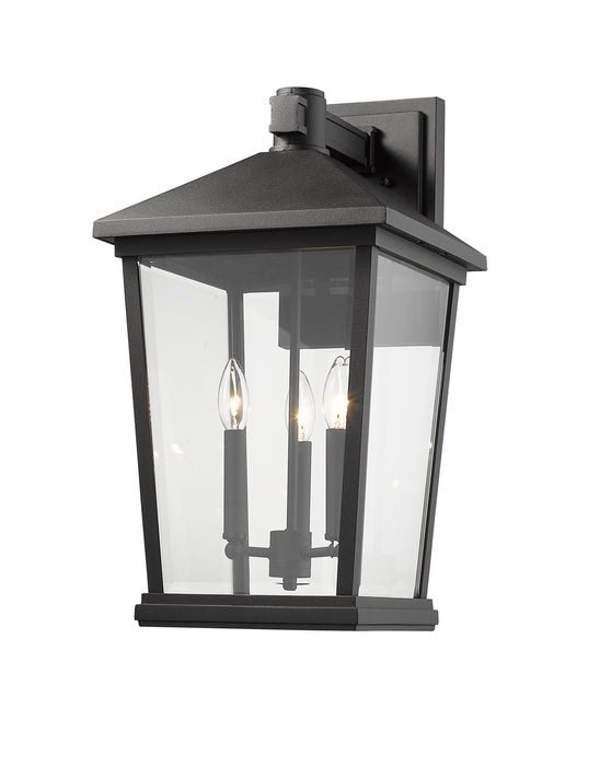 Dress up a modern outdoor space with the classic silhouette of this three-light outdoor wall light. Streamline and radiate with the sleek black finish over clean lines.