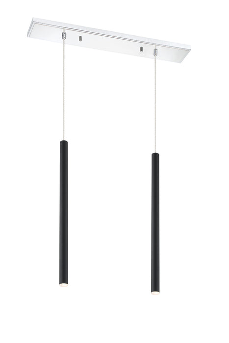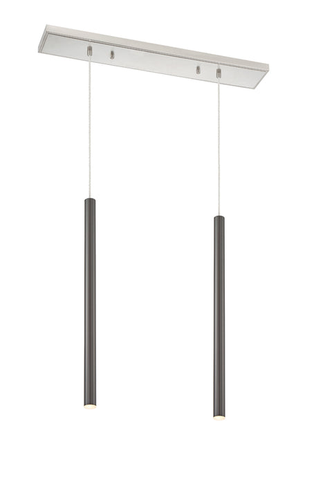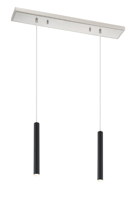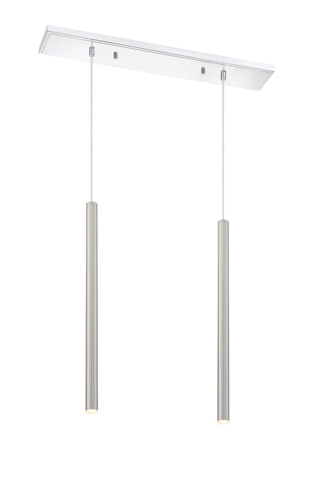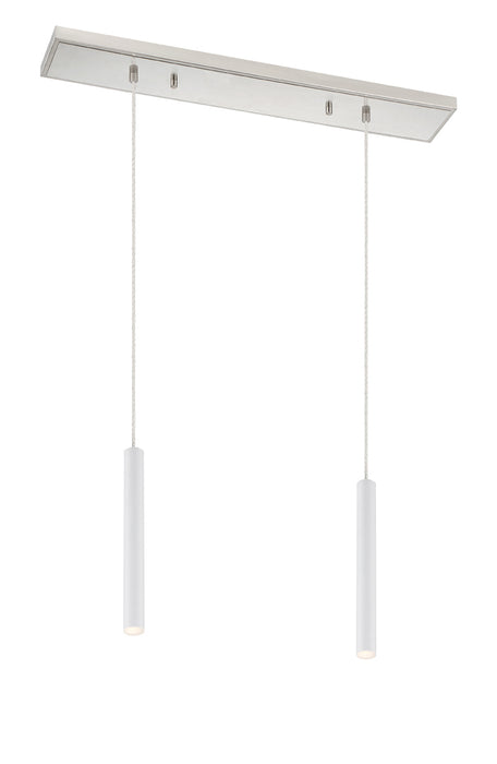 Streamline a modern space with the clean lines from this two-light pendant light. A bright brushed nickel finish radiates sleek charm throughout any bathroom or living room.